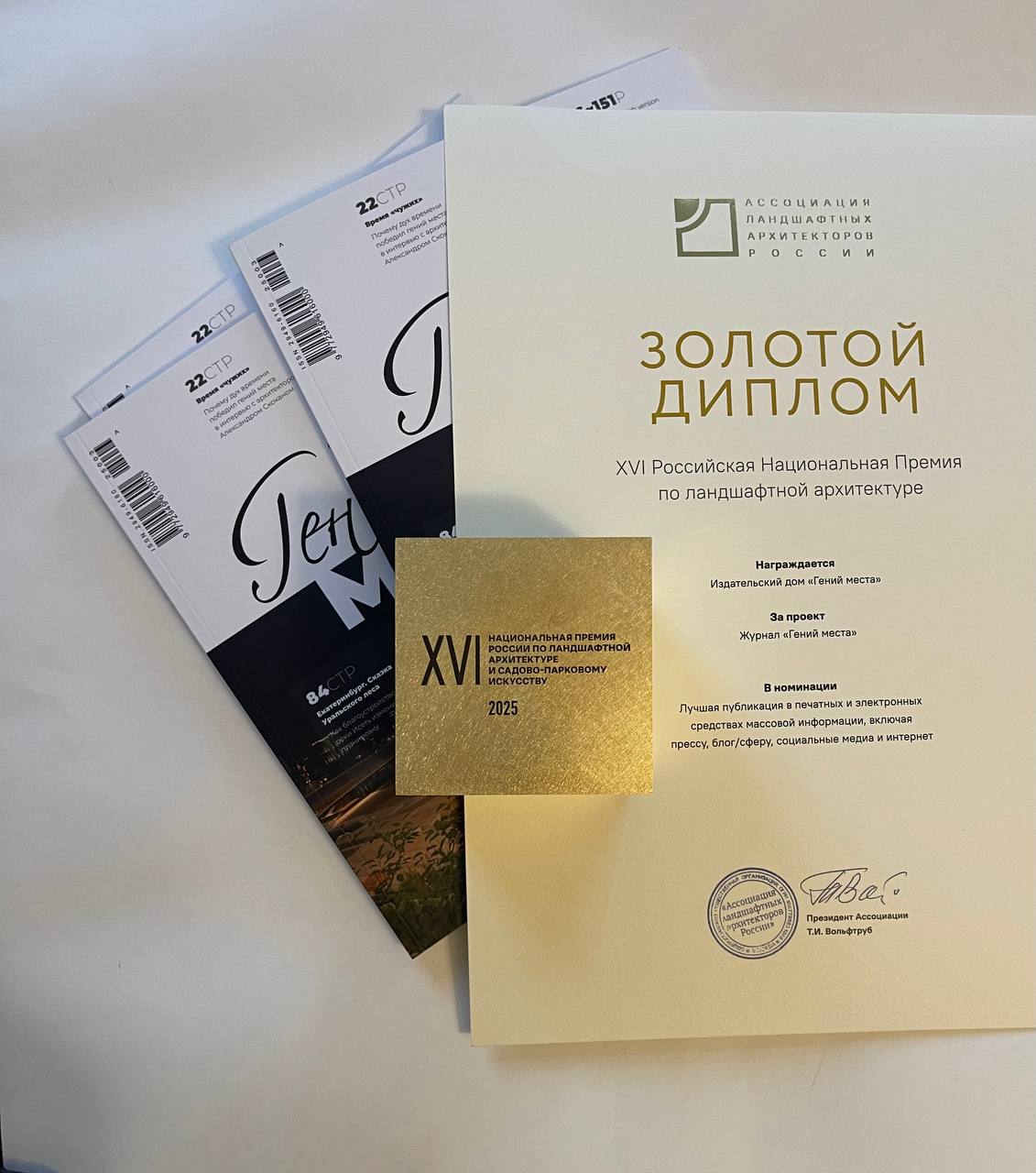 В номинации «Лучшая публикация в печатных и электронных СМИ» Золотого диплома удостоен журнал «Гений места».